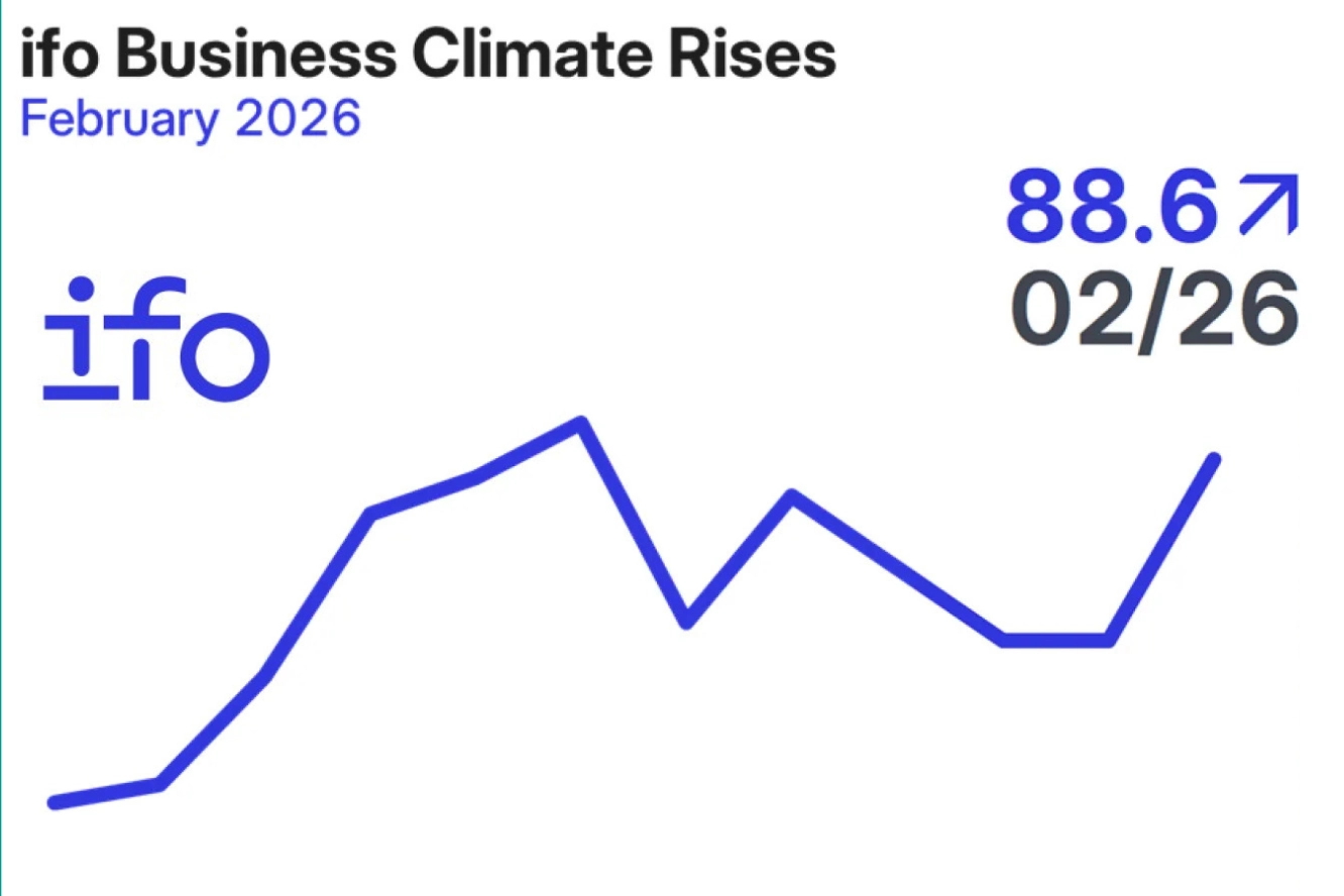 Almanya iş dünyası güvenini ölçen ifo İş İklimi Endeksi, Ocak ayındaki 87,6 puandan Şubat ayında 88,6 puana yükseldi. Şirketlerin mevcut iş durumlarına ilişkin değerlendirmeleri olumlu yönde toparlanırken, gelecek döneme ilişkin beklentilerde de iyileşme gözlendi. İmalat sektöründe endeks belirgin biçimde artarken, firmaların mevcut iş koşullarına yönelik değerlendirmeleri olumlu yönde toparlandı. Hizmetler sektöründe ise iş iklimi iyileşti. Ticaret sektöründe endeks sınırlı bir gerileme gösterdi; şirketler mevcut durumlarını bir miktar daha olumsuz değerlendirdi. İnşaat sektöründe ise iş iklimindeki toparlanma devam etti. Kaynak: ifo Institute