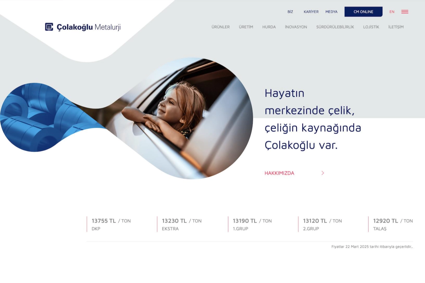 Türkiye’nin önde gelen çelik üreticisi Çolakoğlu Metalurji’nin 80. yılını kutladığı bu özel senede, “Hayatın Merkezinde Çelik, Çeliğin Merkezinde Çolakoğlu Var’’mottosuyla çıktığı dijital dönüşüm yolculuğunda tasarlanan web sitesi; kullanıcı odaklı, modern ve sade tasarımı, güçlü görselleri ile jüri tarafından beğeniyle karşılandı.